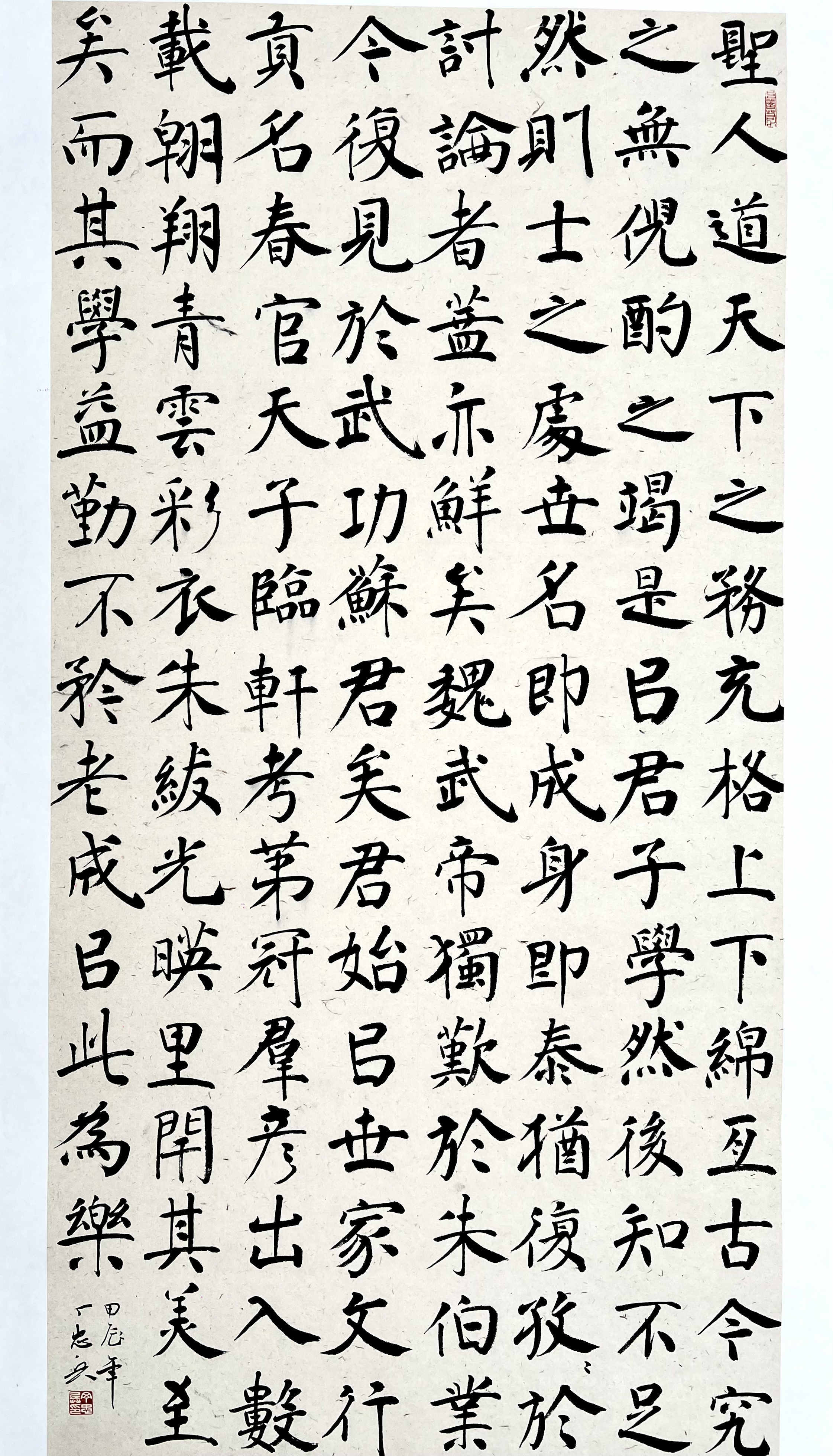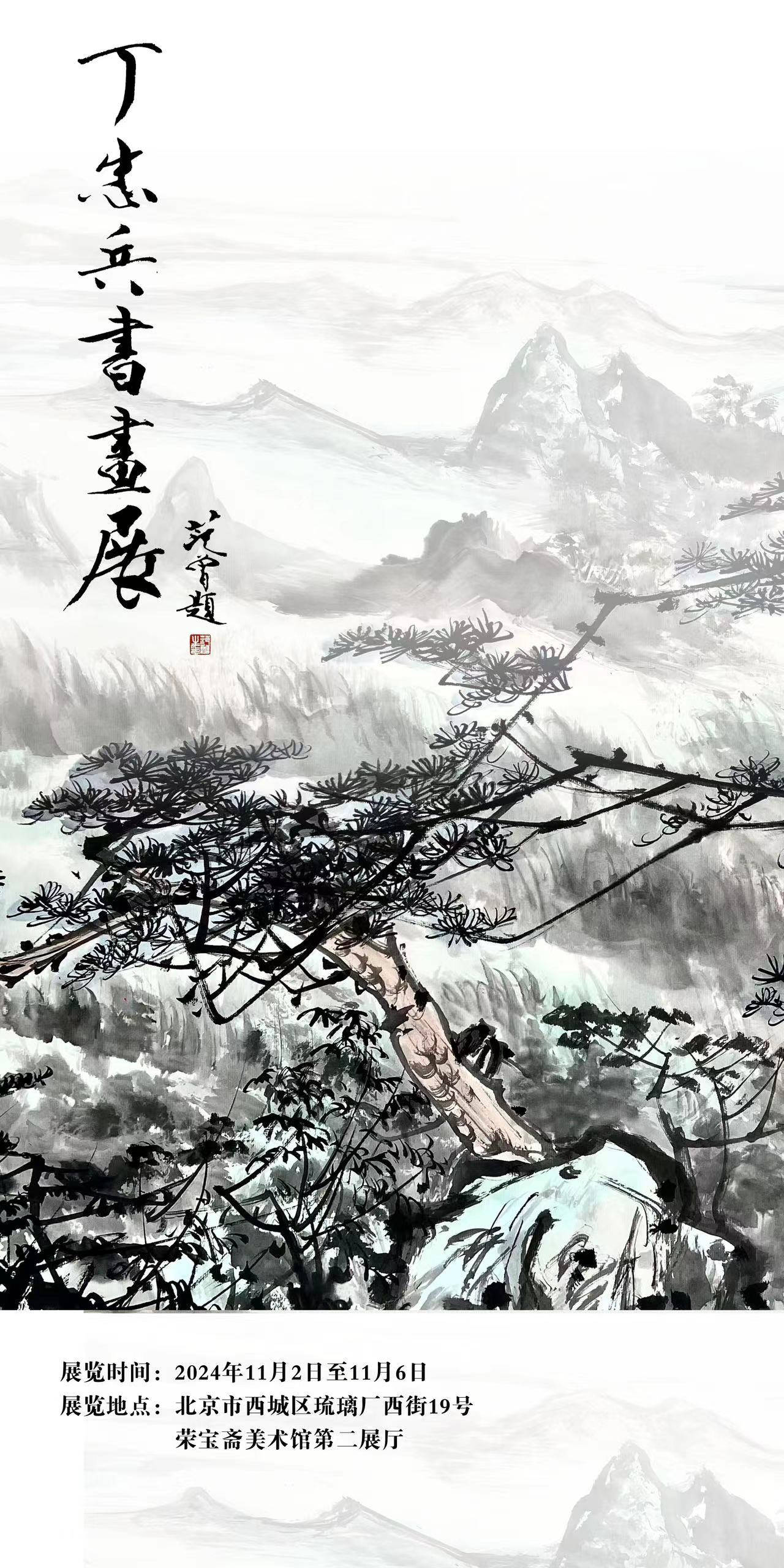 丁忠兵书画展于2024年11月2日至6日在荣宝斋美术馆第二展厅举办,此次画展由当代大儒范曾先生题写展名,是荣宝斋展览部推荐当代青年优秀艺术家的一次展示。丁忠兵自幼喜爱书画,师学范曾先生笔墨精神,“尊传统,师古人,诗书入画,清新俊逸”笔墨风格。丁忠兵秉性坚定天真,书画作品难有灵气、空灵之境,心中如无丘壑,怎能胸怀笔墨点丹青。丁忠兵秉承书画同源,坚持书画同修之理,心随物游,旷野风中漫步时,酣畅淋漓之情在作品中尽显。