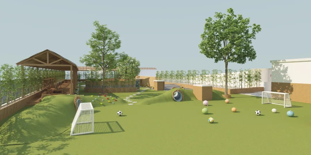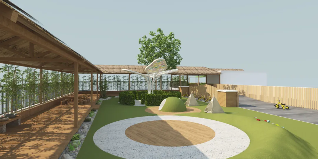 一些幼儿园的楼层高、天台空间广阔,来往室内比较耗费时间。因此,我们有必要修建一些辅助功能区来提升孩子们的使用体验。
