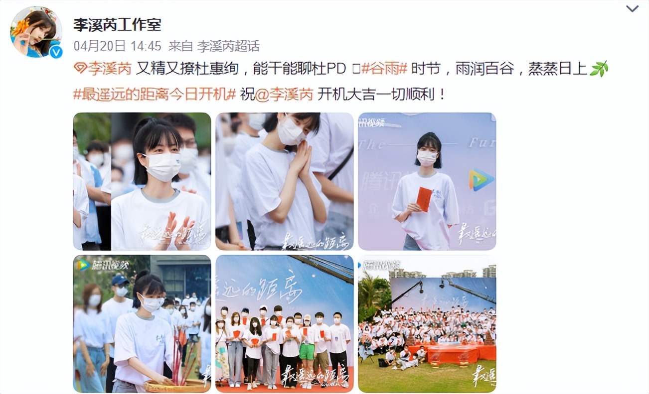 4月20日是节气谷雨,也是春季的最后一个节气,这一天,《最遥远的距离》开机,李溪芮工作室发文:又精又撩杜惠绚,能干、能聊的杜PD,谷雨时节,雨润百谷,蒸蒸日上。李溪芮登上热搜榜第一,网友纷纷点击话题,热搜3个瓜。