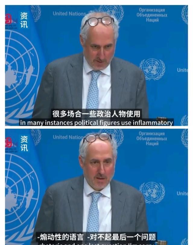 他那坚定的眼神,让联合国秘书长发言人,都忍不住语无伦次了起来。