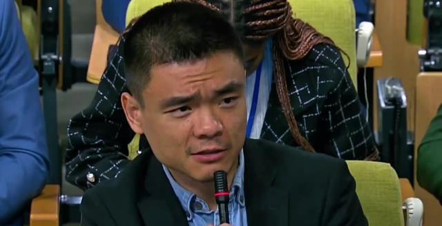 4月9日,留在寸头的徐德智在联合国记者会中,手握着话筒,问出这个振聋发聩的问题。