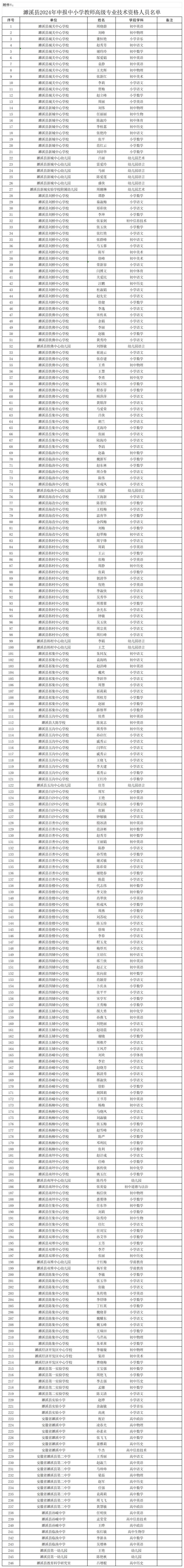 根据淮北市教育局 淮北市人力资源和社会保障局《关于开展2024年度淮北市中小学(幼儿园)教师职称评审工作的通知》(淮教〔2024〕51号)文件精神,2024年度濉溪县中小学教师系列资格评审工作在岗位结构比例内,按照相关规定有序开展。现将申报高级、一级专业技术资格人员名单予以公示,公示期为2024年10月31日—11月6日,公示期间如有异议,请向县纪委监委驻县教育局纪检监察组、县教育局人事股反映。