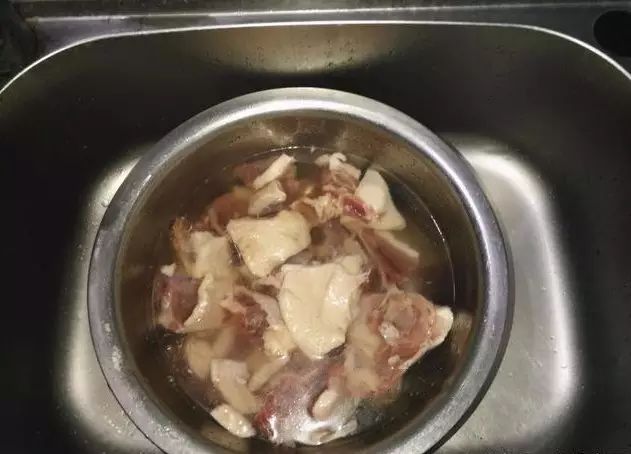 2、把老鸭放入锅中,倒入清水,尽量多没过鸭子一些,大火加热煮沸,撇去浮沫,再继续煮5分钟后捞出,冲去浮沫后,充分沥干后切成大块。