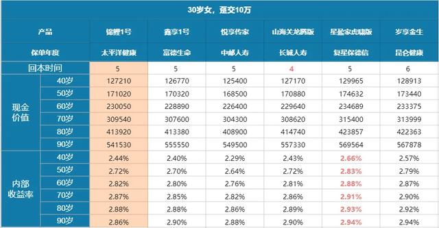 回本最快的是长城人寿的山海关龙腾版,第四年就能回本,