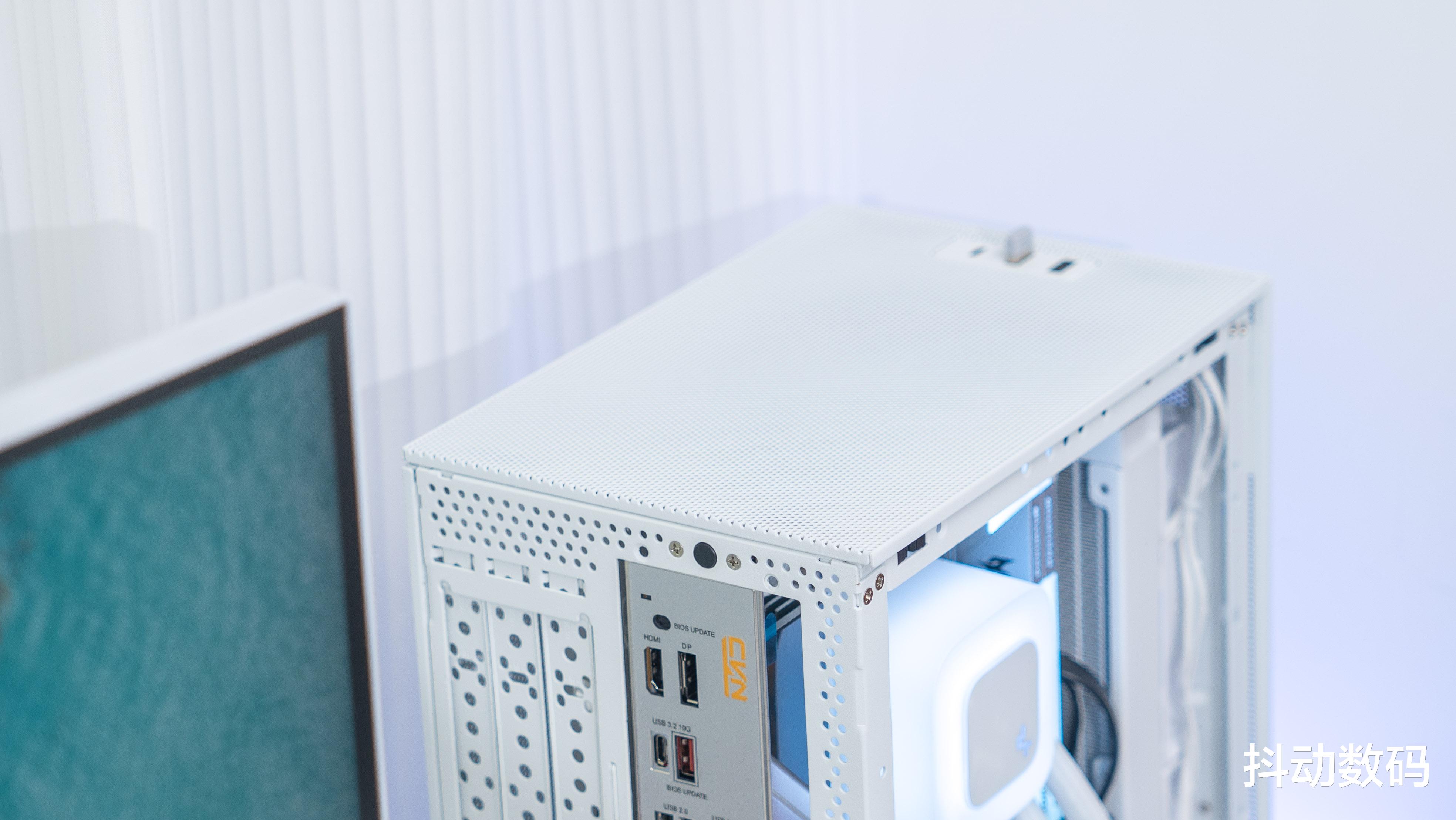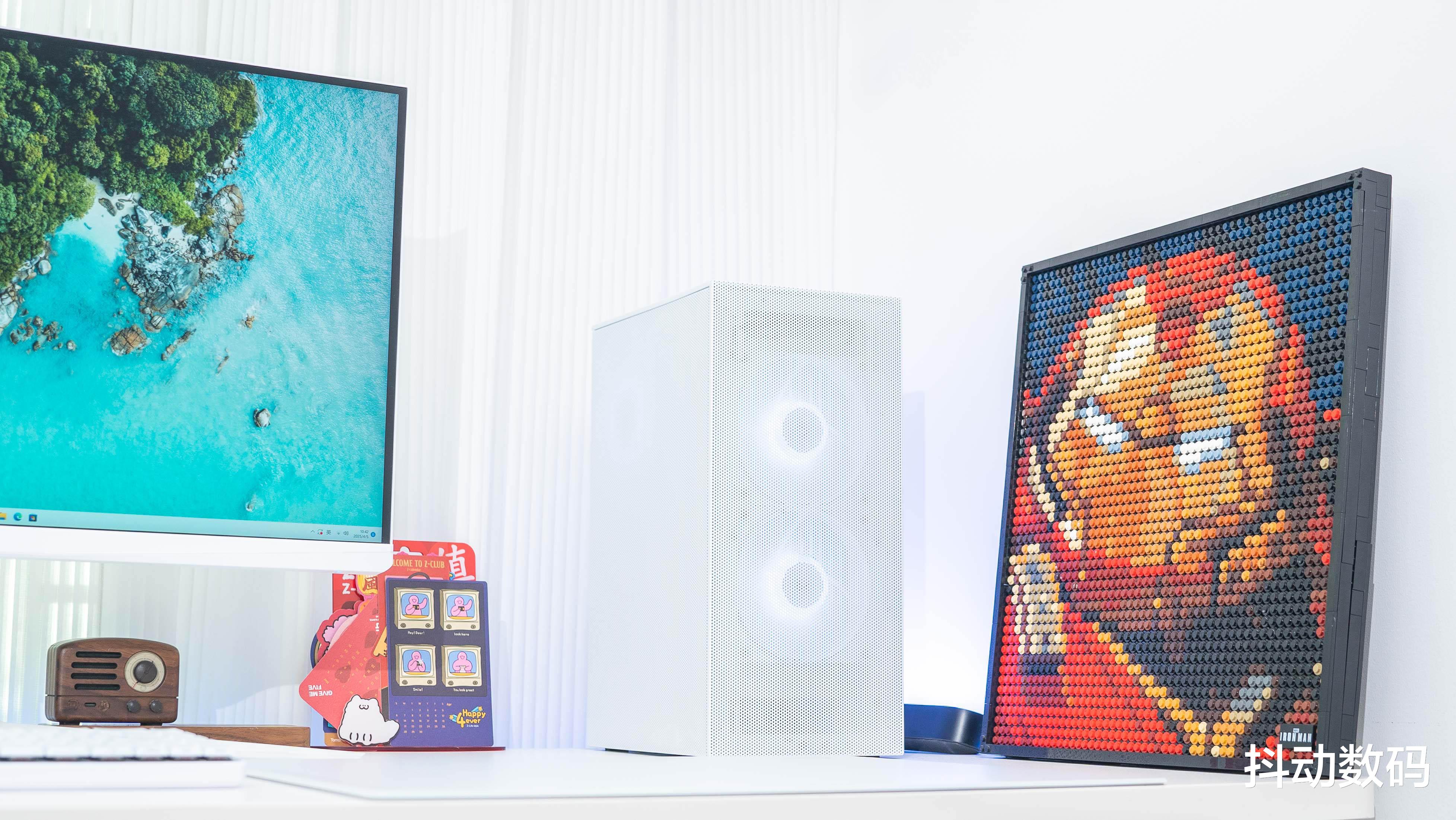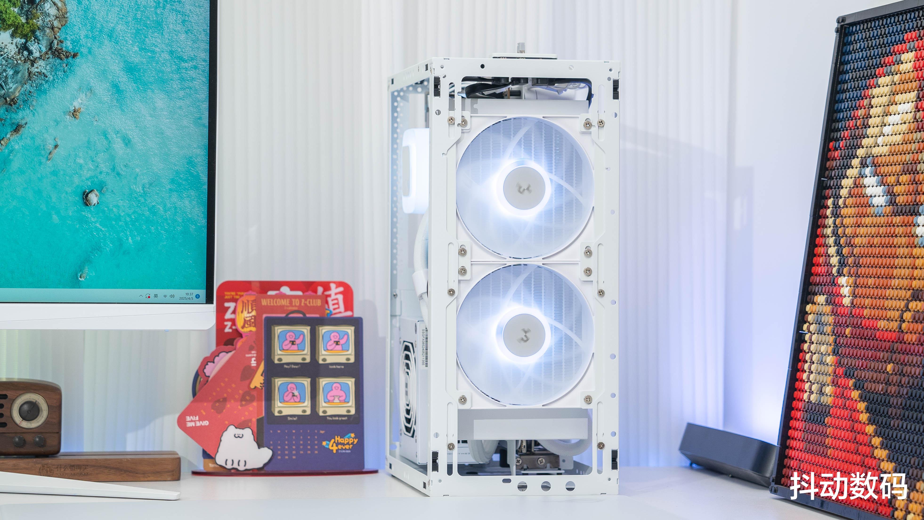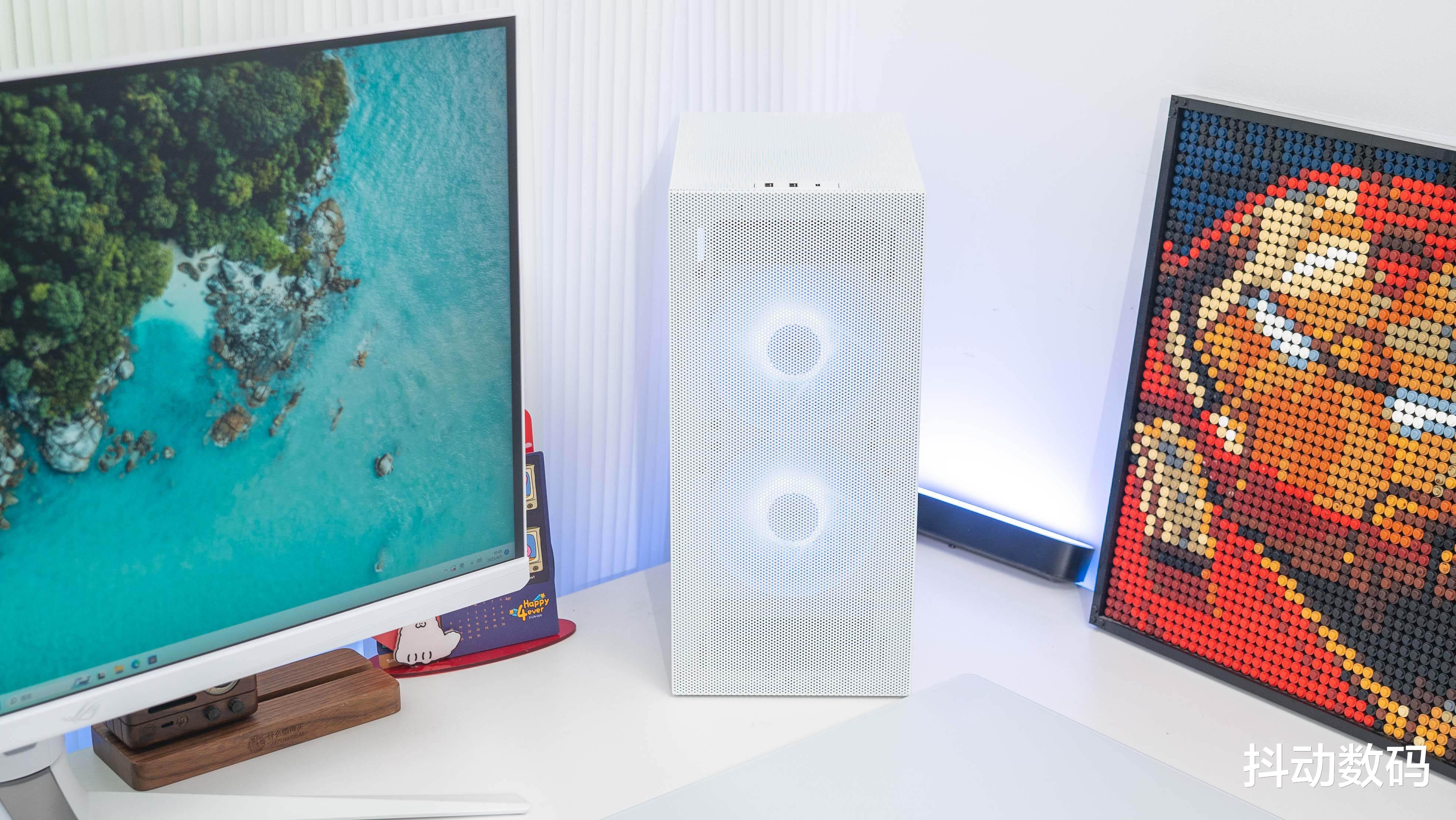 SSUPD Meshroom S 白色的Mesh面板,搭配九州风神冻果240mm两个ARGB风扇效果若隐若现的白色灯光。