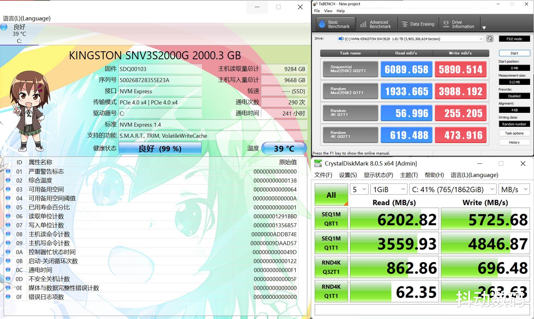 金士顿NV3 2TB PCIe 4.0 SSD读写测试如图。