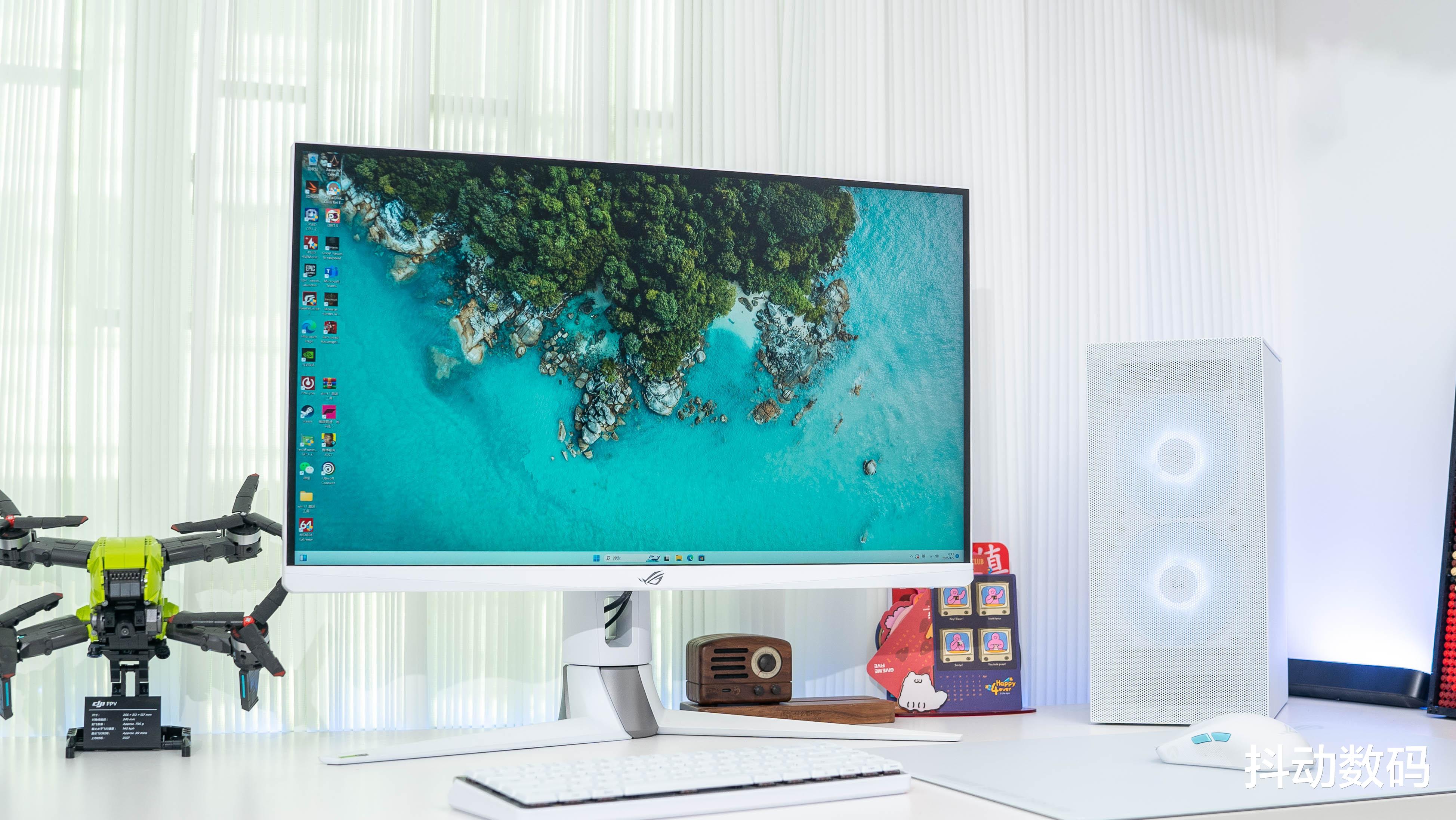 整机展示:先来一张桌面效果一览,搭配白色的显示器以及键鼠套装搭配白色的 SSUPD Meshroom S 整机的颜值各位是否满意呢?