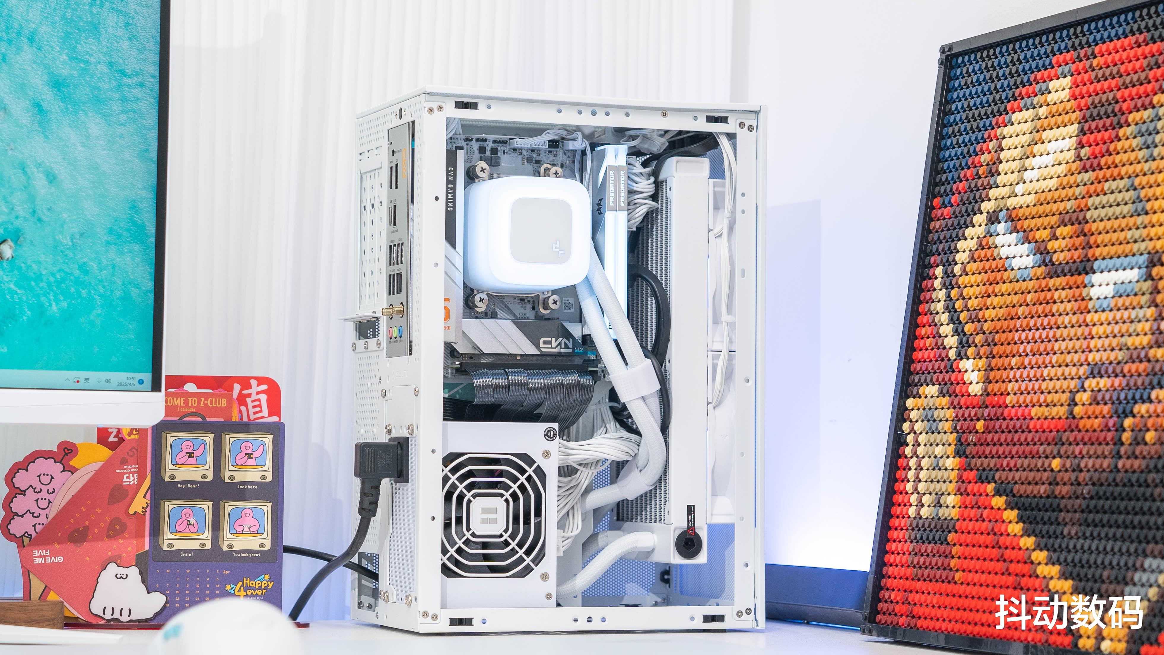 白色的ITX机箱选择的是SSUPD的Meshroom S 机箱,这款白色ITX机箱内部结构设计有不错的可玩性设计,而且对于目前硬件的兼容性都具有不错的支持。虽然是ITX平台装机但是硬件上不会有太多纠结地方。装机显卡选择了白色的索泰RTX 5070 12GB XGAMING OC显卡,相比上一代方正设计的索泰XGAMING系列显卡这次50系的XGAMING系列显卡外观上圆润了不少,设计上延续了前代40系XGAMING显卡的涂鸦设计。其他方面内存、水冷以及电源都选择了白色设计,具体配置可以参考一下配置单。
