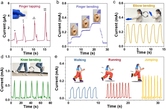 PGM柔性传感器在灵敏度和响应范围上取得了显著突破,并在实际应用中展示了其多功能性和稳定性。其不仅能实时监测压力容器模型的充气/放气过程,还能检测人体运动如手指、肘部、膝盖的弯曲以及行走、跑步和跳跃等动作。PGM的分级多孔结构为开发超宽范围和超高压传感设备提供了新的方向,具有在结构健康监测、个人健康护理和医疗诊断等领域的广阔应用前景。