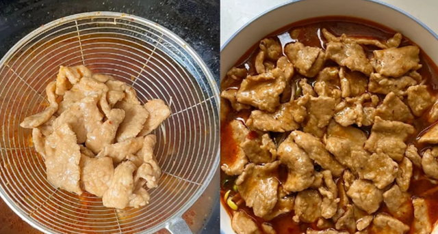 5.再把肉片下到锅里煮到变色,连汤一起倒进碗里。