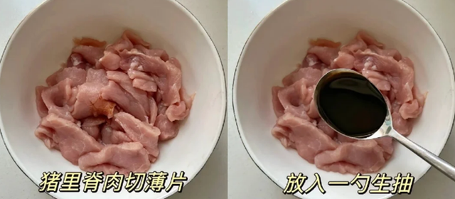 1.猪里脊肉切成薄片,加点蛋清、料酒、生抽、淀粉、盐,用手抓匀,腌15分钟。
