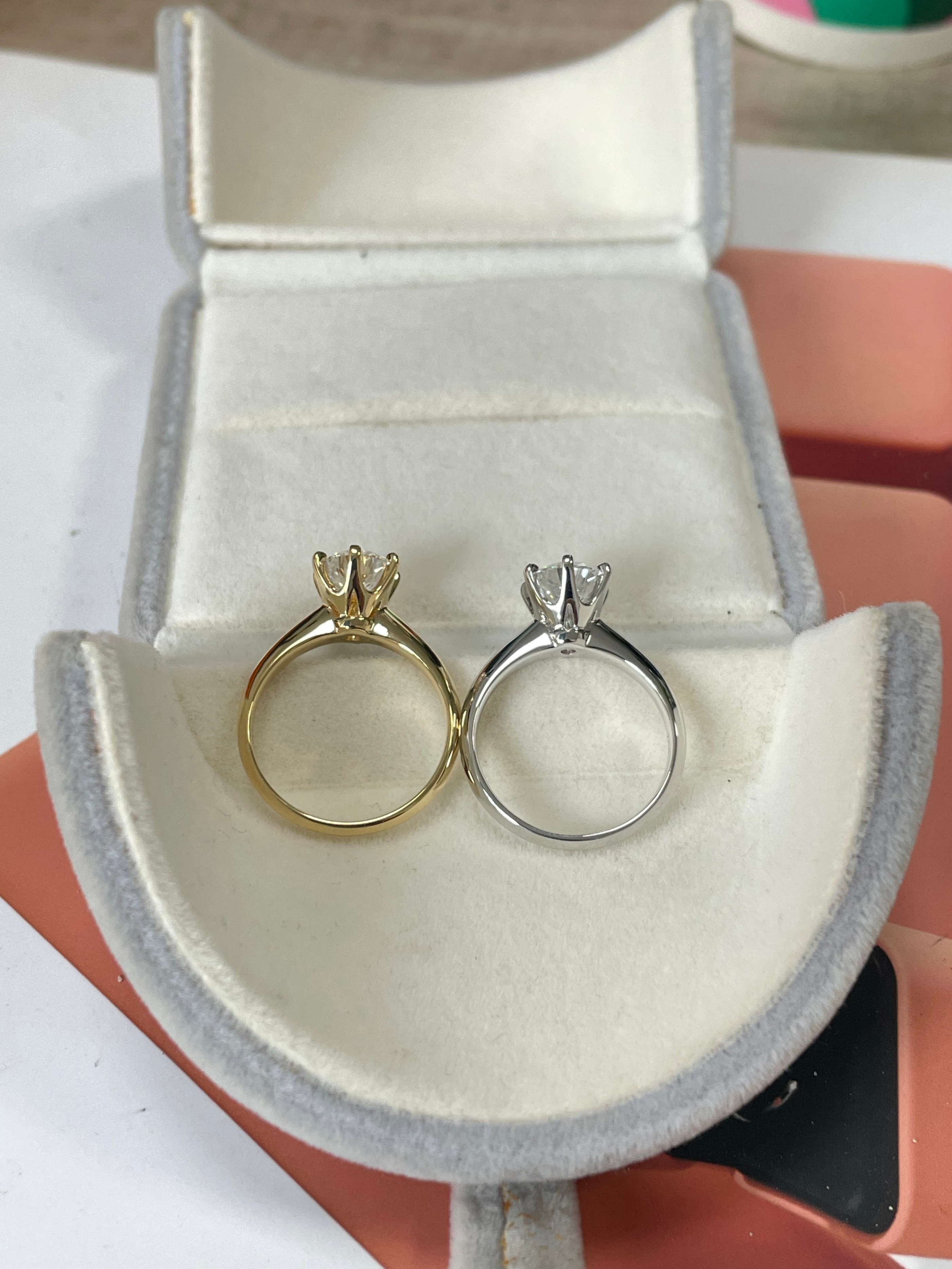 六爪镶嵌的设计,是钻戒款式中的经典之作。它巧妙地将钻石稳稳固定,同时让钻石的光芒得到最大程度的释放。六爪如同爱情中的双手,紧紧相拥,守护着中心的璀璨钻石,也守护着情侣们心中的那份纯真与热烈。