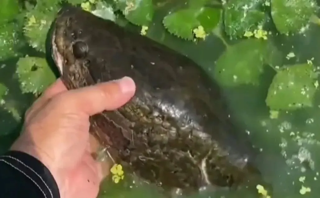 广东网友@源之星,在网络上发布了一条小视频,并且配有文字:蛇头黑鱼身,这鱼有谁认识的。作为户外达人的我,这种瓜我肯定要吃的!