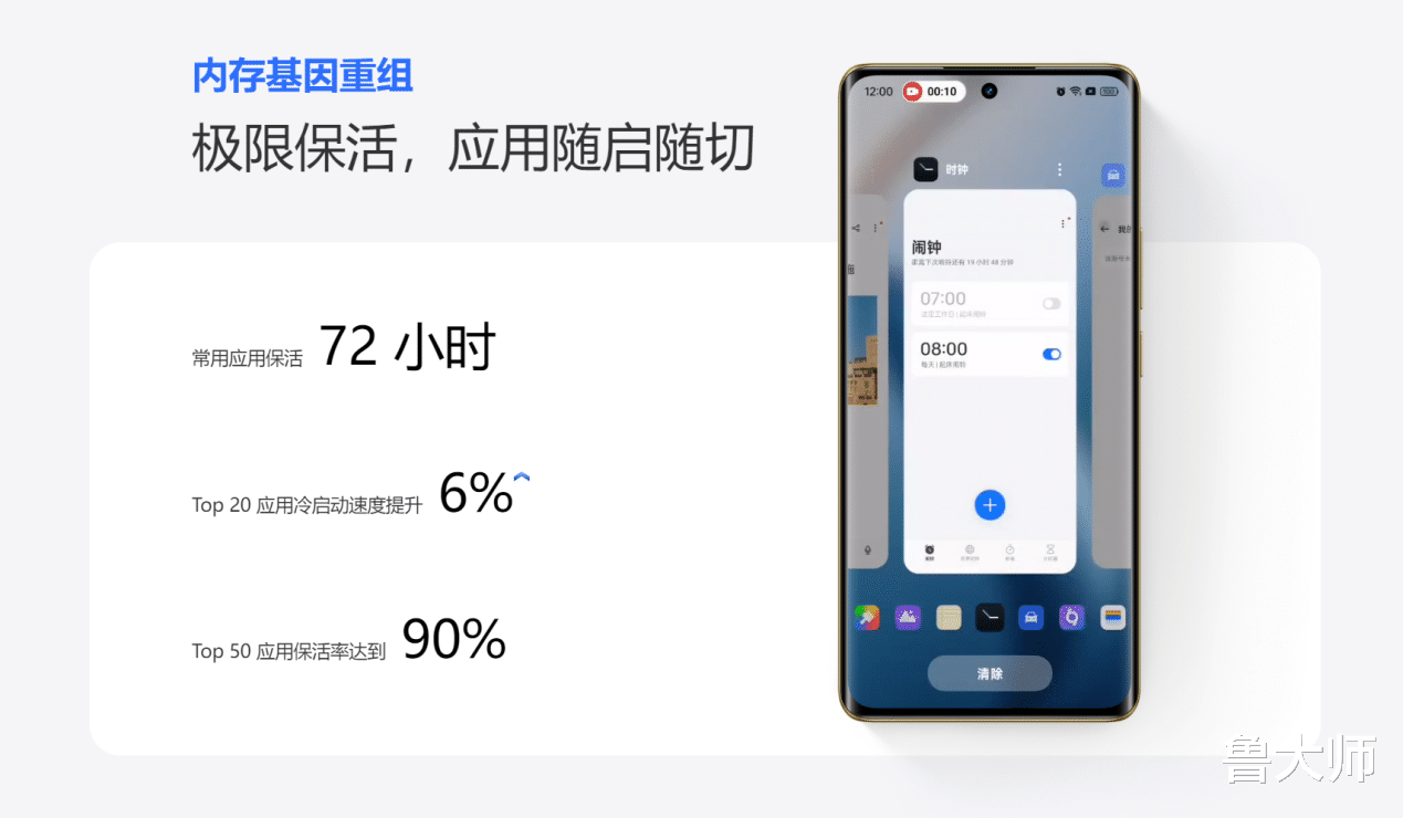 “不公平调度2.0”则是实现线程级的不公平调度,配和上至高+12GB的内存融合,更好解决了多任务时前台资源不足导致的卡顿现象。
