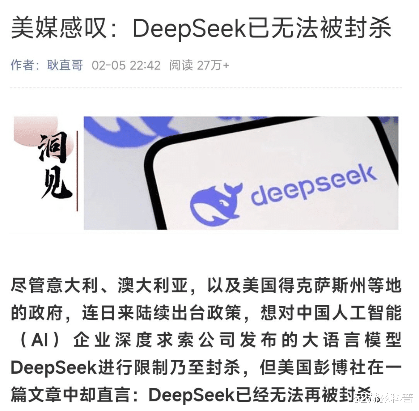 然而,仅仅几天过后,美媒又开始称DeepSeek已无法被封杀!