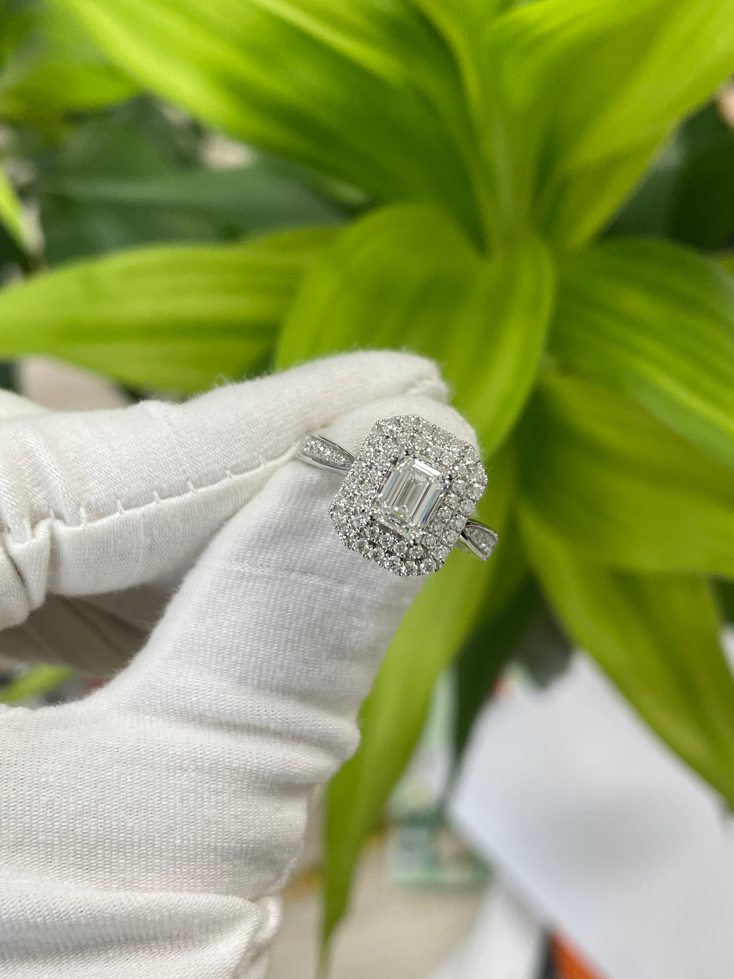 这款小冰糖钻戒,不同于传统的圆形或椭圆形切割,它采用了异形切割的方式,使得钻石呈现出一种别致的美感。祖母绿作为主钻,其深邃而神秘的绿色在阳光下闪烁着迷人的光彩,仿佛诉说着古老而浪漫的故事。