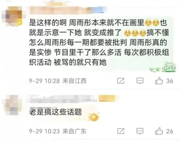 陈好明明帮队伍解决了问题,周雨彤一上来就评价了一句“我觉得那没意思,也不好玩”。