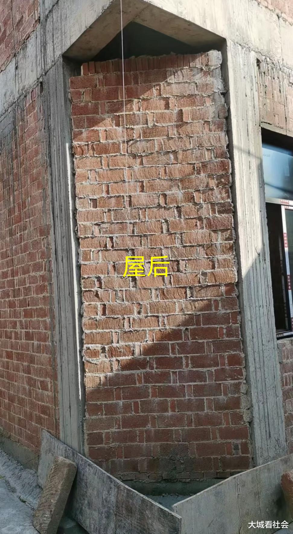 上图就是她家屋后的样子,可以看到1楼让了个角,到2楼就恢复成直角了,不过下面是有木板挡着,感觉让和不让都没有区别。
