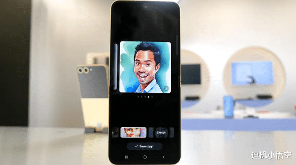 我还尝试了人工智能驱动的照片氛围功能,该功能可以根据时间和天气微妙地改变壁纸,从而为壁纸增添更多个性化色彩,同时还提供其他选项来选择壁纸周围的框架颜色。在 Gallery 应用程序中,我还尝试了新的照片辅助功能,该功能可以在人工智能的帮助下将任何图像转换为草图。我认为它可以很好地将我变成卡通或 3D 模型。