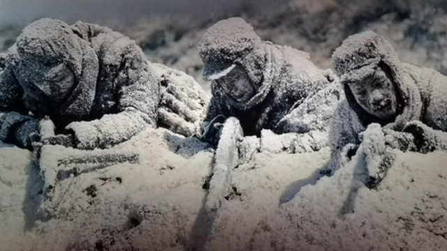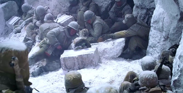 战士们尽管身处极寒环境,早已没有了精力,但他们依然在顽强地拼搏。