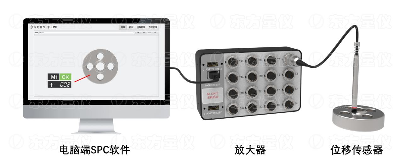 对于加工件的几何尺寸测量,比如高度、长度、厚度以及圆度、同心度、跳动度等,都可以采用位移传感器,结合信号处理放大器,对工件进行测量。测量的结果可以由电脑端SPC软件读取,以Excel格式保存,进行常规的统计分析,或者上传数据库等操作。