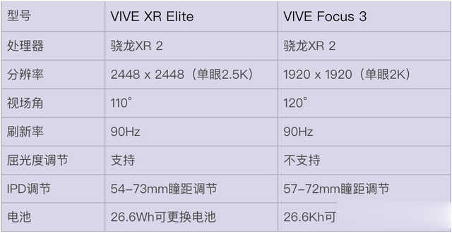 如果你对VIVE Focus 3还有些印象的话,就可以发现,VIVE XR Elite在性能上基本是贴着VIVE Focus 3微调而来,甚至可以认为是低配版的VIVE Focus 3。