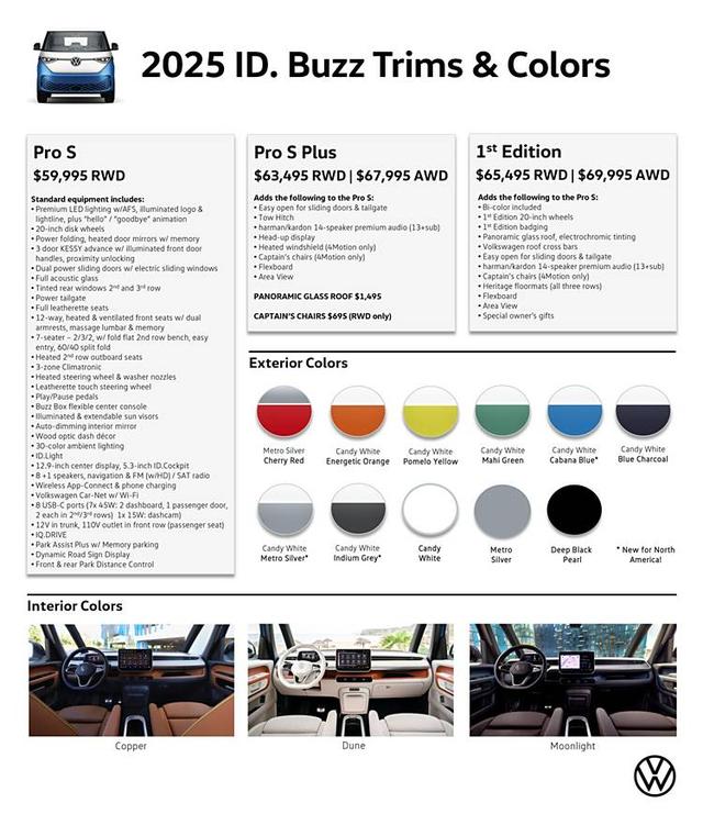 根据国外媒体报道,大众新款ID.Buzz公布了海外售价,并计划于今年四季度开启交付。在海外市场上,大众ID.Buzz同步推出了标轴版和长轴版两款车型,入门级Pro S的MSRP起价为61,545美元(约为43万人民币),中规格的Pro S Plus起价为65,045美元,旗舰版车型起售价为67,045美元,这个售价超过了全电动ID.4和ICE驱动的Atlas SUV,成为大众在美国起售价最贵的车型。