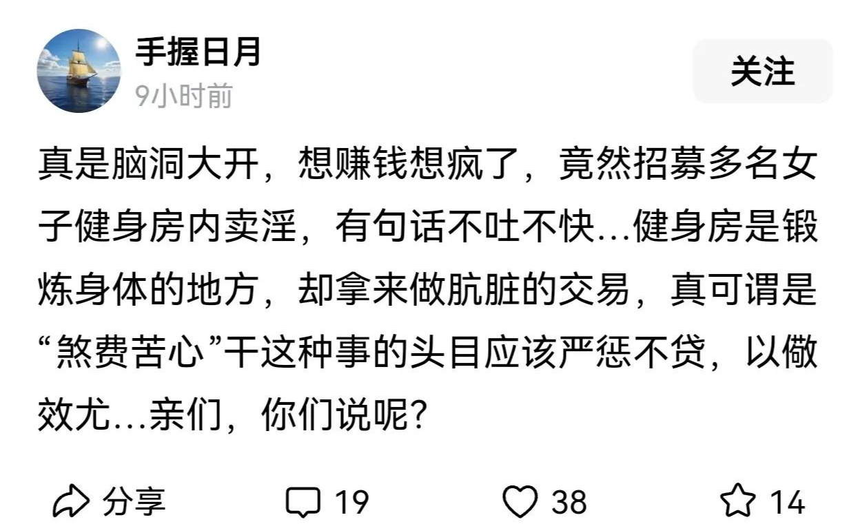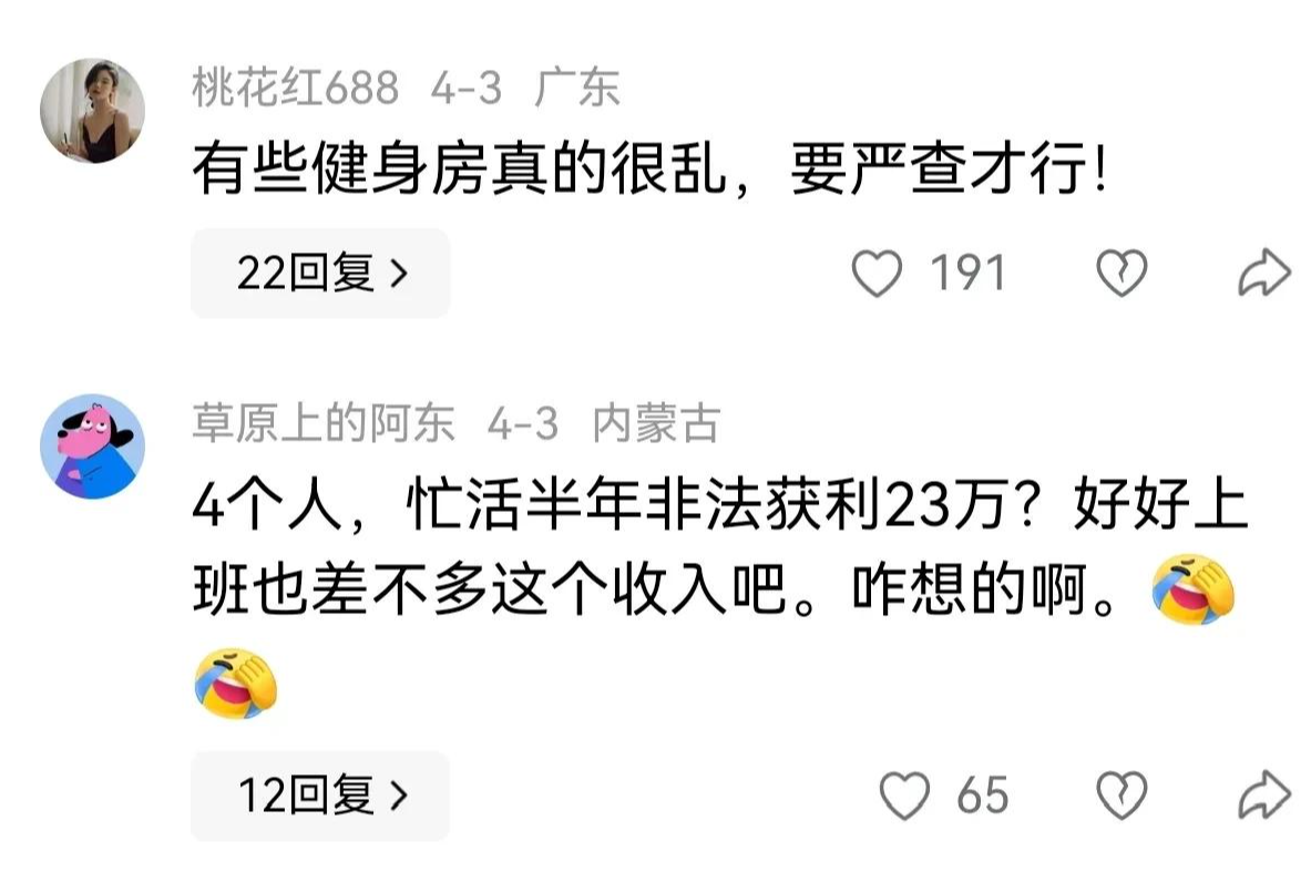 健身本该是强身健体的好事,却让几个利欲熏心的人毁了名声。这件事告诉我们:无论什么时候,走正道才能活得踏实。那些想靠歪门邪道发财的人,早晚会被一网打尽!