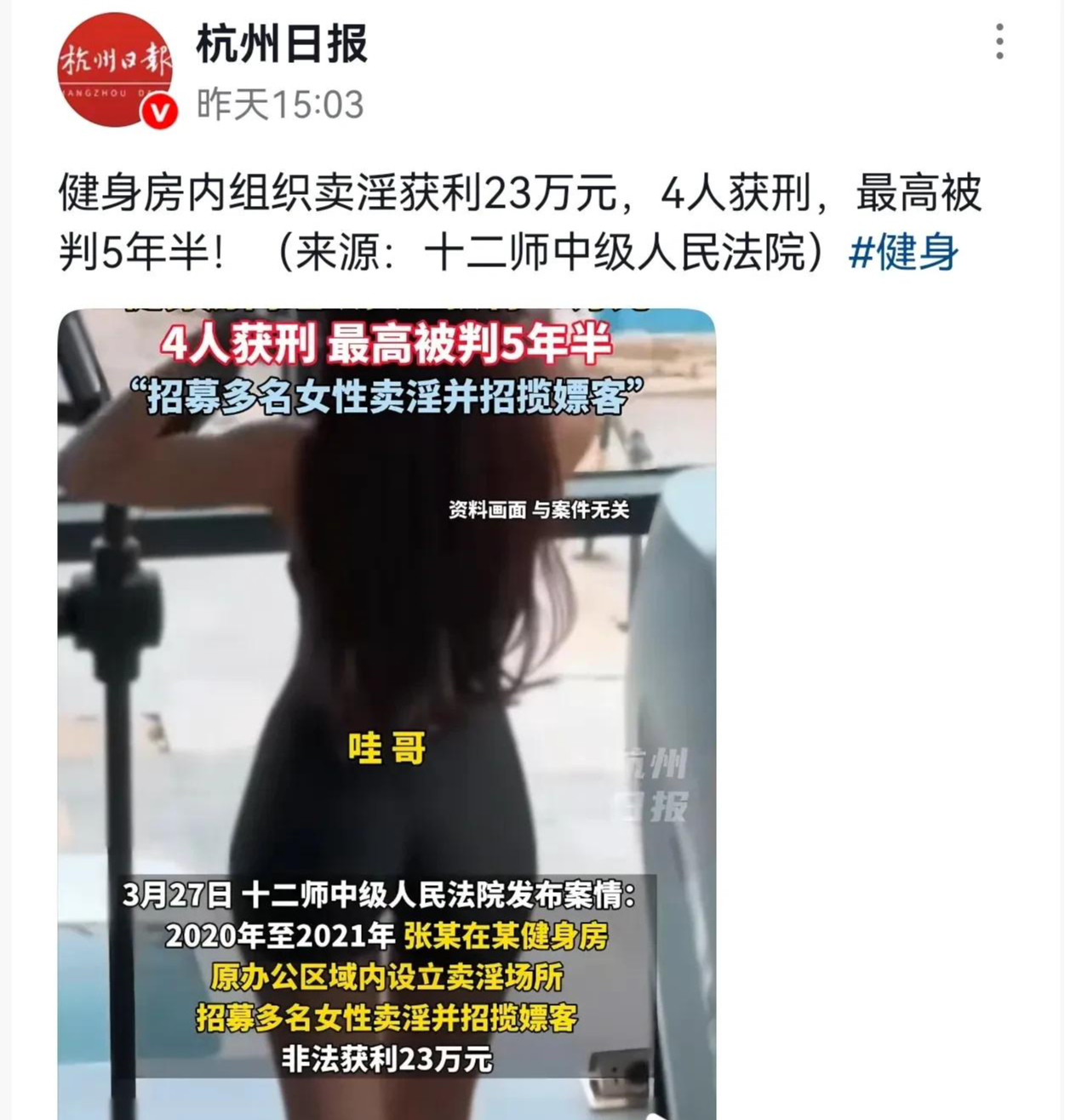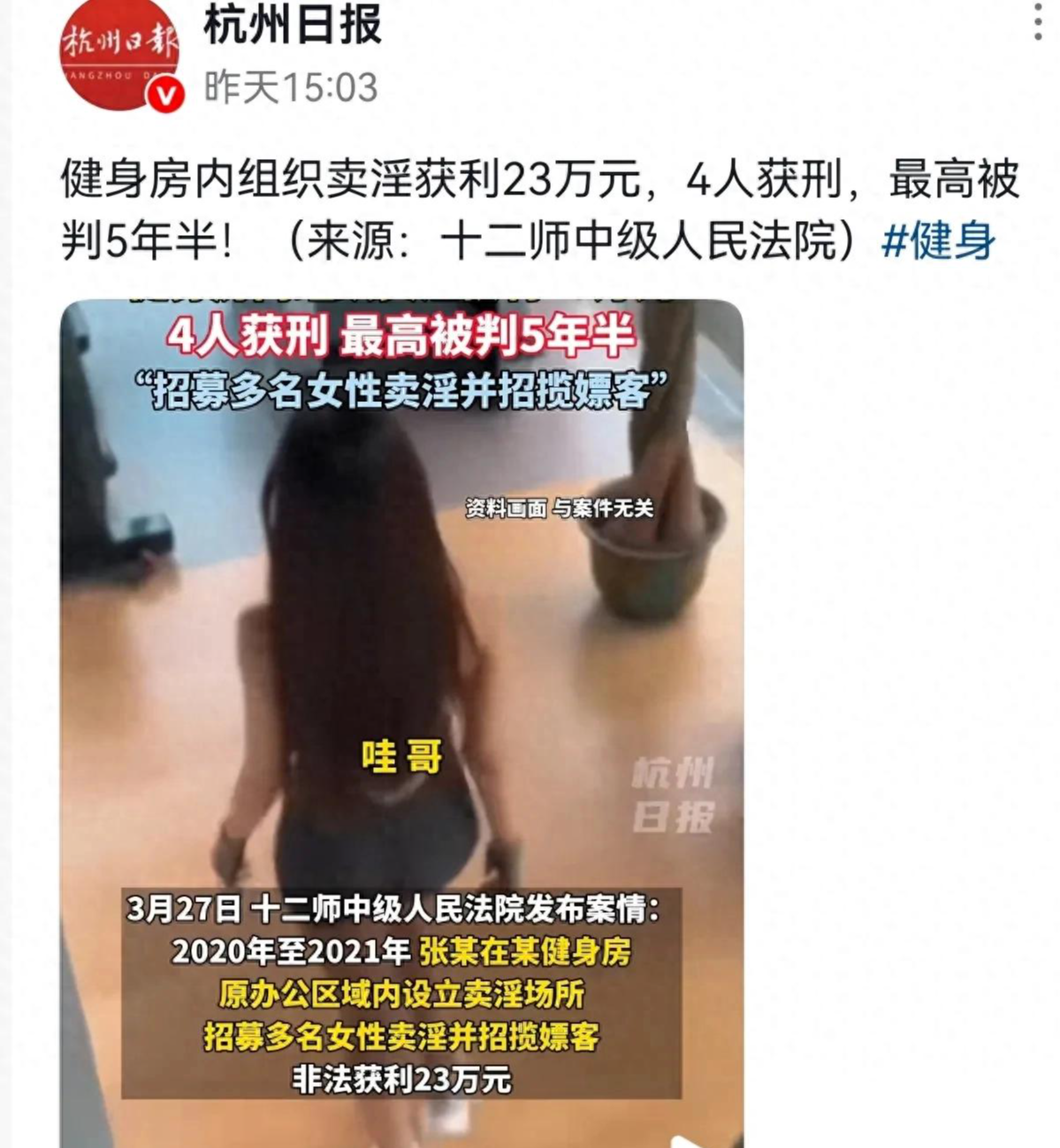 最近,新疆生产建设兵团第十二师中级人民法院公布的一起案件,让无数人惊掉了下巴——谁能想到,本该是挥洒汗水、锻炼身体的健身房,竟然成了组织卖淫的窝点!主犯张某带着三个同伙,在健身房的办公区里干起了见不得人的勾当,短短一年多时间非法赚了23万元。消息一出,网友们直呼:“现在的犯罪分子真是无孔不入!”