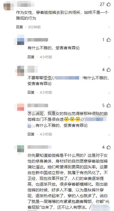 而原本是受害者的女子也承受着巨大的压力,“瑜伽裤”一下子成了众人争论的焦点。