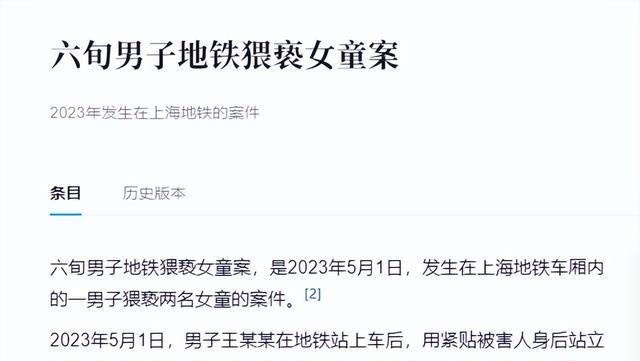 2023年5月,上海地铁里一名六旬男子王某某,竟然在车厢里连续猥亵两名女童,最后被判处有期徒刑两年。