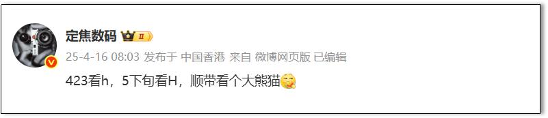 定焦数码通过微博表示:“423看h,5下旬看H,顺带看个大熊猫。”总结就是荣耀4.23发布gtPro,5月下旬在成都发布nova14主摄1/1.5英寸。
