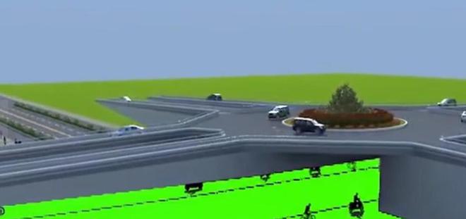 本新型立交桥整体结构分为上、中、下三层。在中间,中层的人行道与下层相连。所有直行车辆和小型车辆通过下层或中层,大货车和转弯车辆通过最上层环岛。机动车、非机动车、行人分开走行。互不影响,大大提高了通行效率。