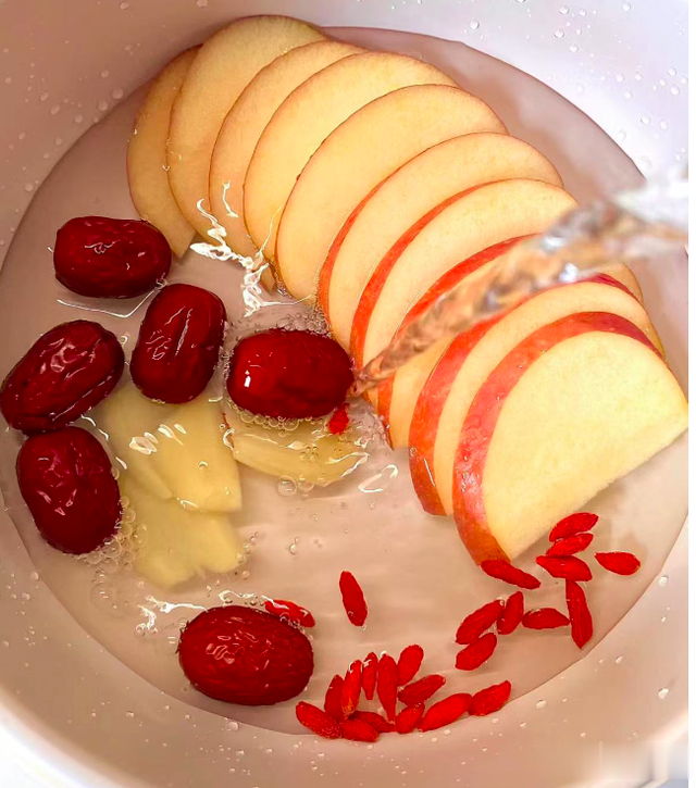 红枣,自古以来就被誉为“补血圣品”,它富含铁元素,能够有效改善缺铁性贫血;生姜,性温味辛,具有温中止呕、解表散寒的功效,是秋季驱寒的“好帮手”;而苹果和红枣的甜味,中和了生姜的辛辣,使得这款饮品更加香甜可口