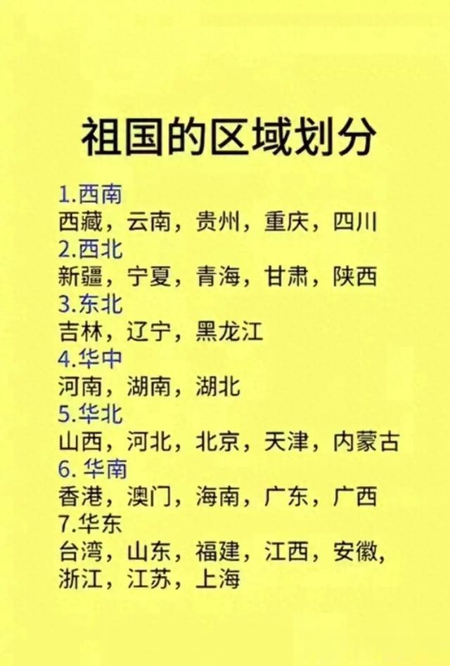 终于有人把祖国区域的划分整理出来了,收藏起来看看吧