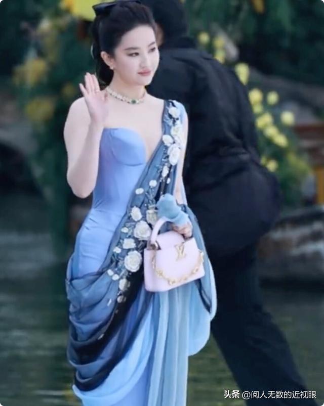 这场活动上,刘亦菲选了一袭香槟紫的抹胸长裙,裙子的设计做了堆叠感,而缓缓走上红毯的刘亦菲,步态优雅,神色温柔,与西湖的美景融为一体,像画一样,美到观众的目光为她定格。