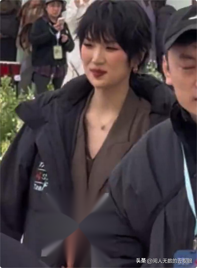 活动上,姚安娜一头干练的短发,一身棕色系的美拉德风格,对比影视剧里日常自然的妆容,这次姚安娜走的是拽姐辣女的路线。
