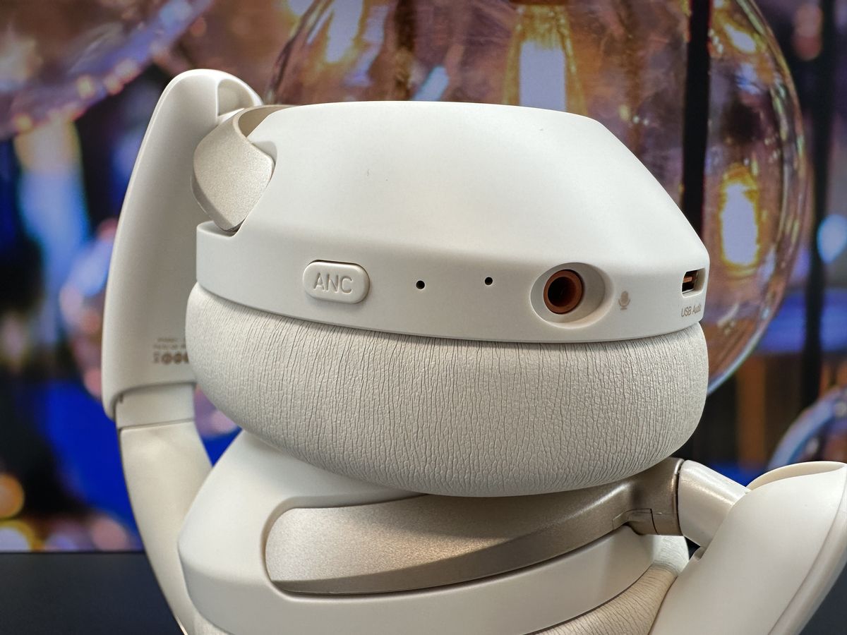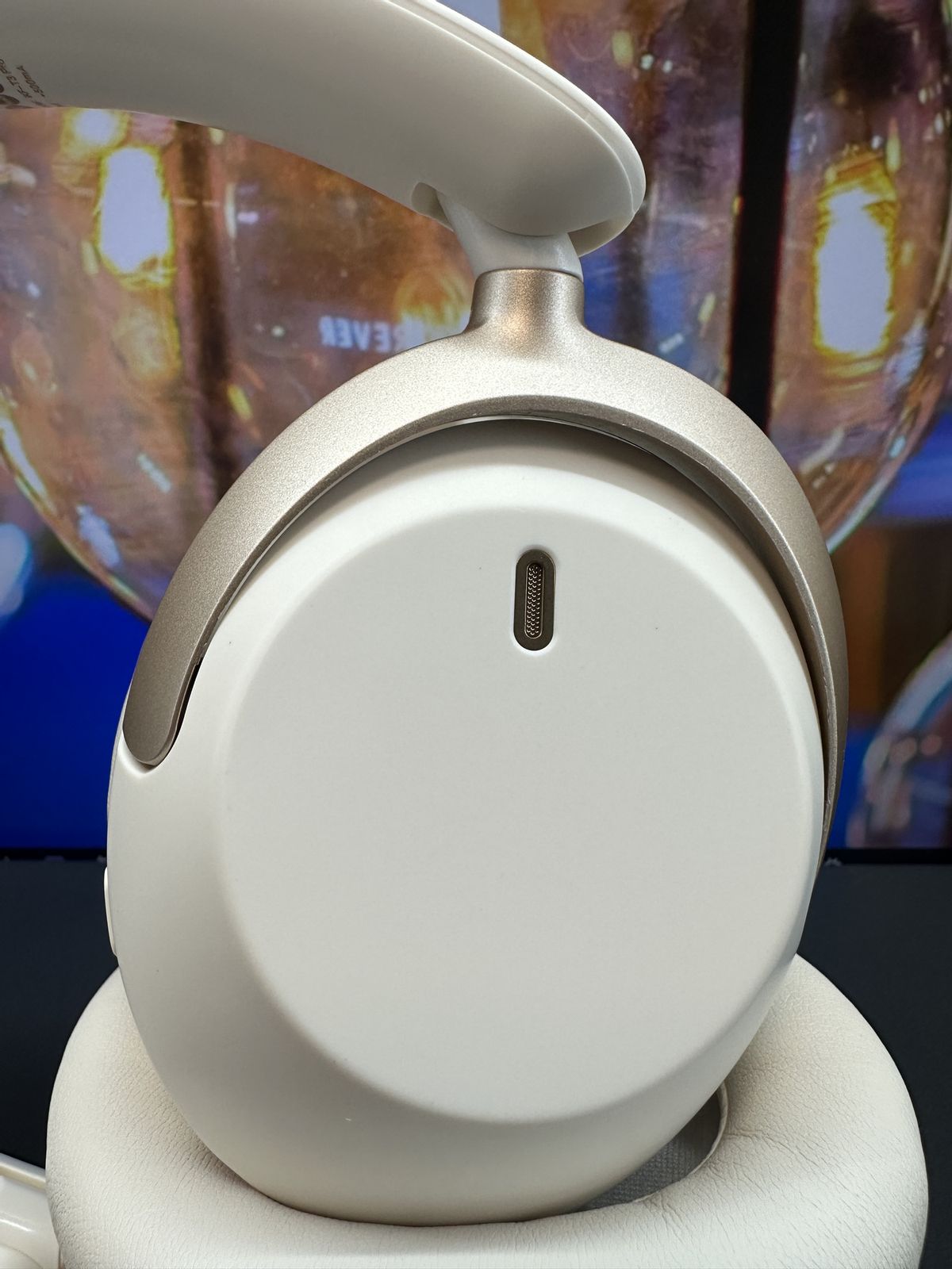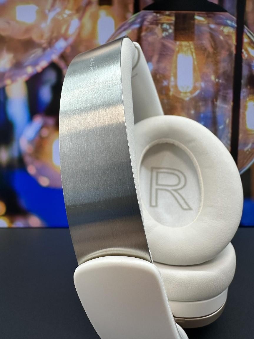 米白色的和香槟金的撞色很养眼,耳机上一道跑道型的金色网罩有画龙点睛的效果,让耳机显得更灵动。