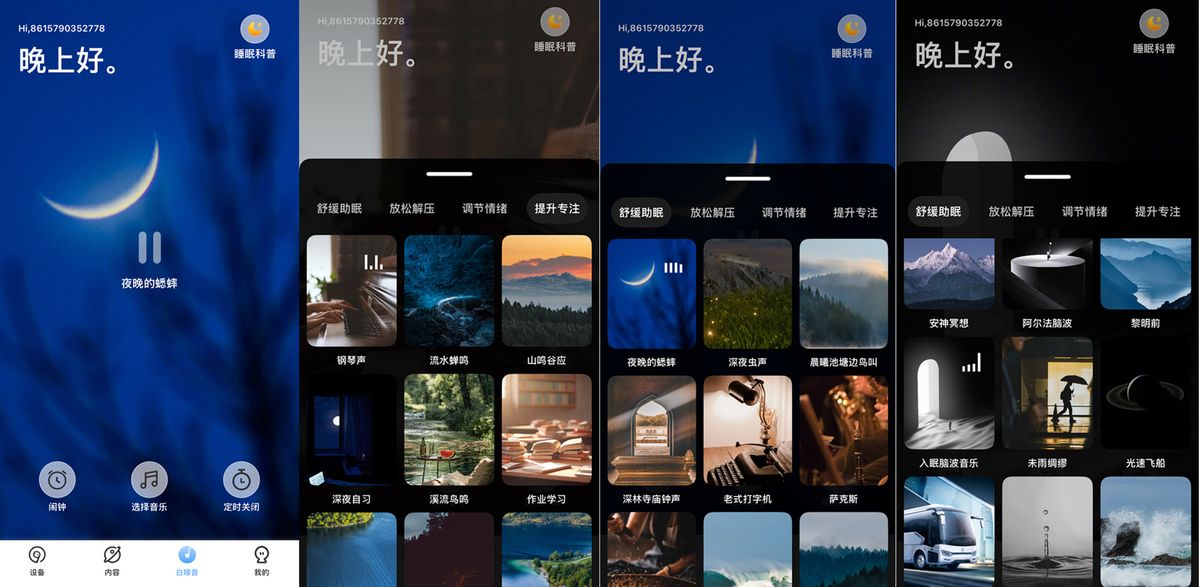 这里特别提一下好用的白噪音功能,有舒缓助眠、放松解压、调节情绪、提升专注等多种多样的选择,非常好用。