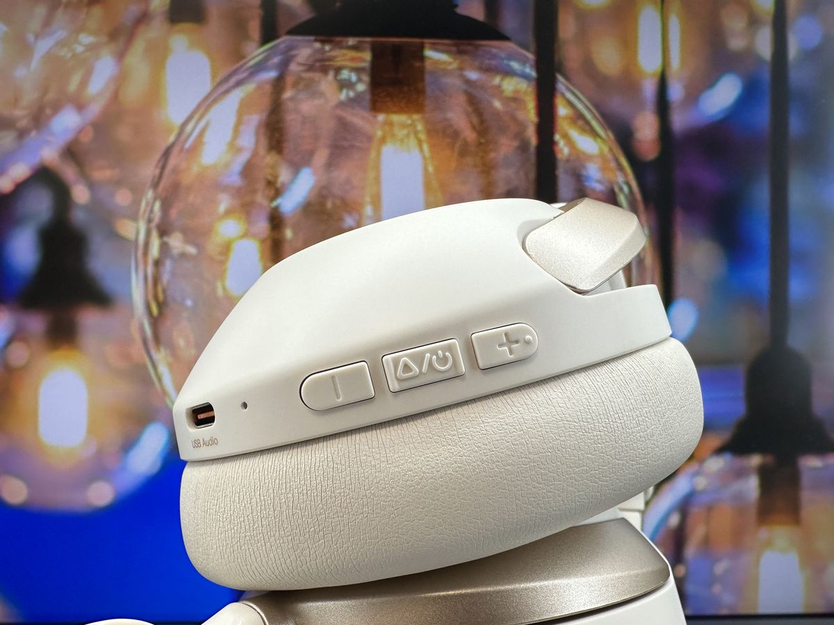 耳机的功能按键主要集中在耳机的左耳耳机上。靠后的位置是音量+/-和开关机三个主要功能键,位置方便用拇指操作,音量+上有点位点,稍作熟悉就可以轻松盲操作。