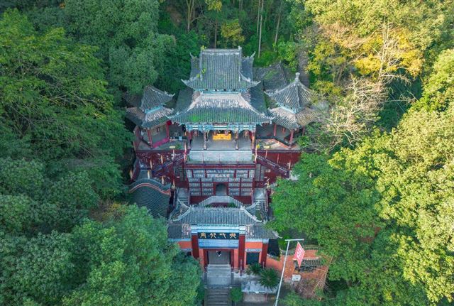 在宜宾翠屏山主峰,有一座占地2200平方米的古建筑群依山而建。