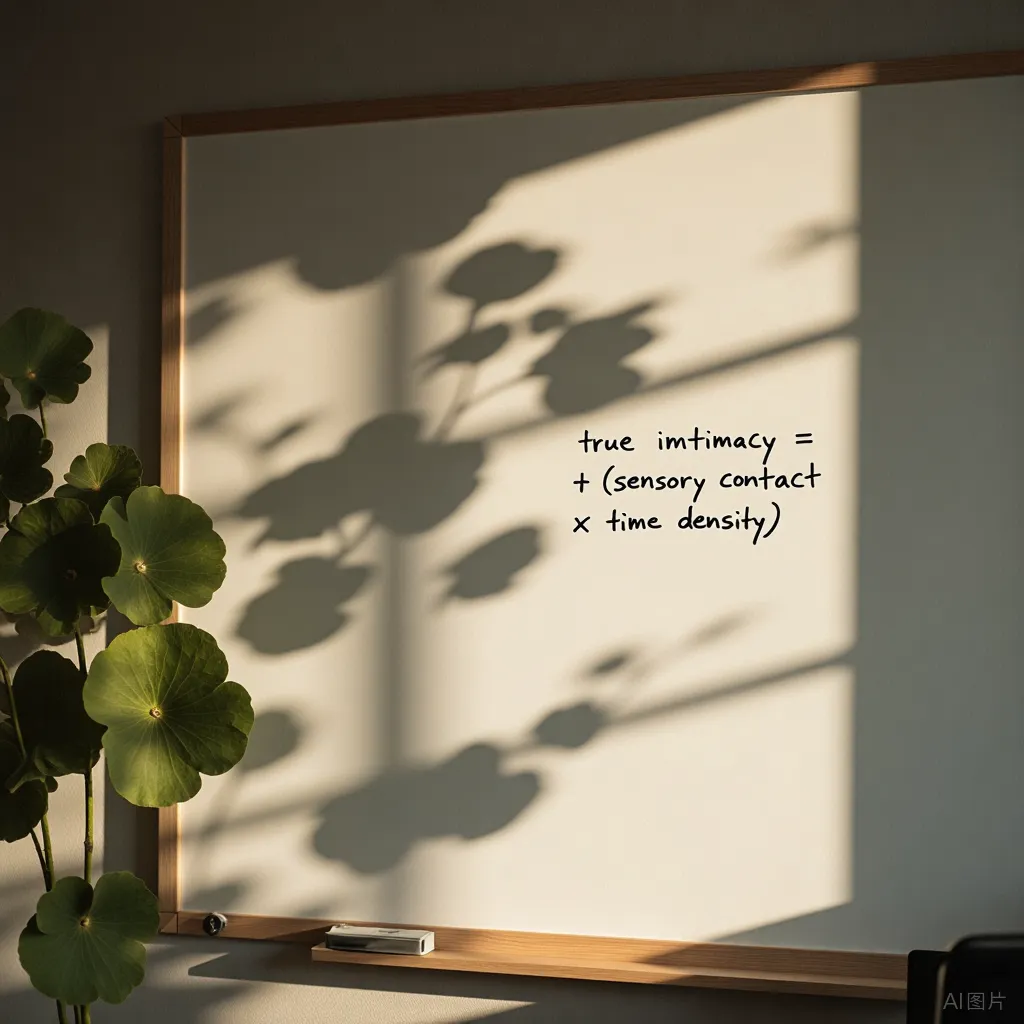 梧桐树影在窗纱上摇曳,咨询室的白板上还留着未擦去的公式:真实亲密=Σ(感官接触×时间密度)
