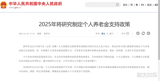 [1]新华社:2025年将研究制定个人养老金支持政策