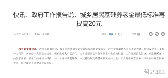 [2]新华社:快讯:政府工作报告说,城乡居民基础养老金最低标准再提高20元