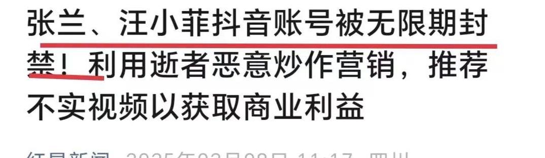 再次听到她的消息,就是某音安全中心发出通报:张兰、汪小菲账号利用大S逝世恶意炒作营销,处罚后未有改正,予以无限期封禁。