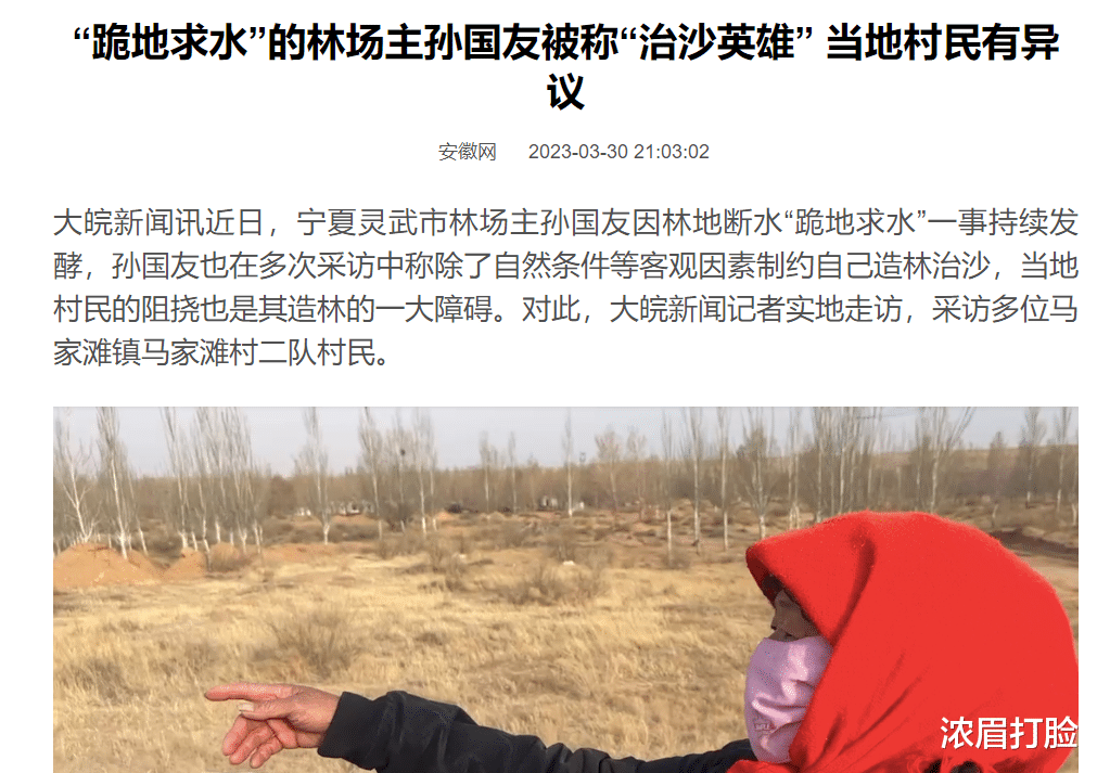 根据大皖新闻的报道,他们现场采访了本村的村民,他们对孙国友治沙英雄的称号并不认可。