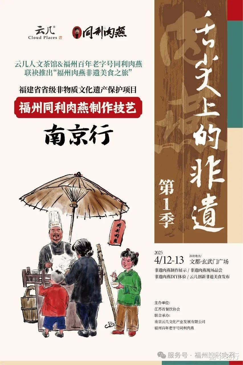 4月12日-13日,由江苏省餐饮协会发起,云几人文茶馆携手福州百年老字号同利肉燕 ,在文都·玄武门广场共同打造“福州肉燕非遗美食之旅”。