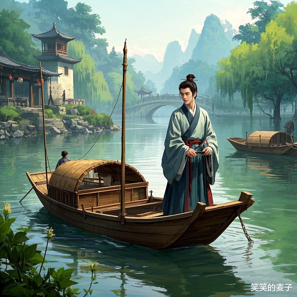 他转头望去,只见一个小吏模样的人,手中拿着一卷书,神色焦急地请求搭船。
