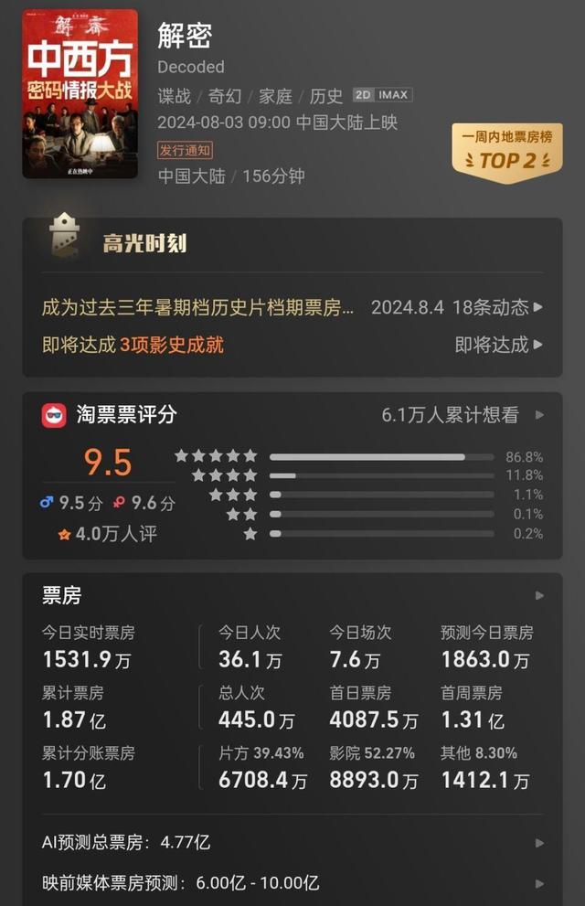 但理想很丰满,现实很骨感!当《解密》这部影片正式揭开神秘面纱,走向市场后,却陷入票房遇冷,口碑两极化的窘境。
