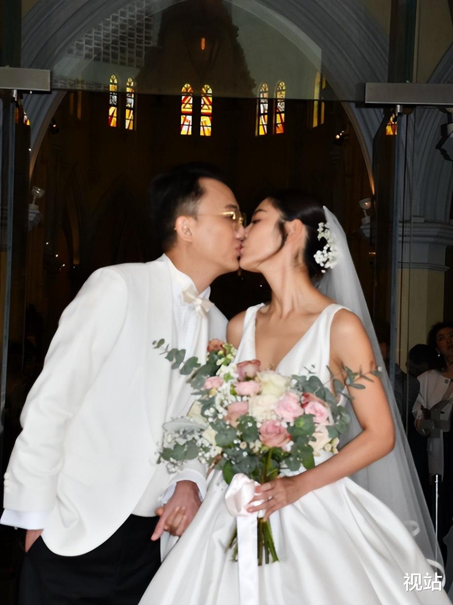 仪式完成后,卫诗雅与周祉安在教堂门外与宾客合影,二人还在记者面前深情一吻,甜蜜满溢。